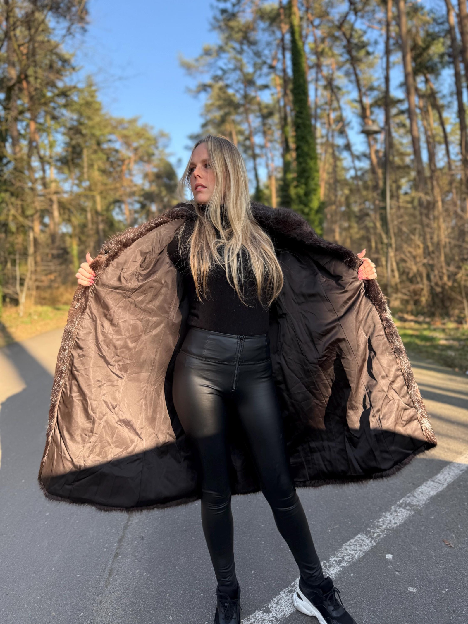 The interior lining is smooth, clean, and free of damage, reflecting the care taken in maintaining this coat over the years. The pockets add everyday convenience while blending seamlessly into the overall design.