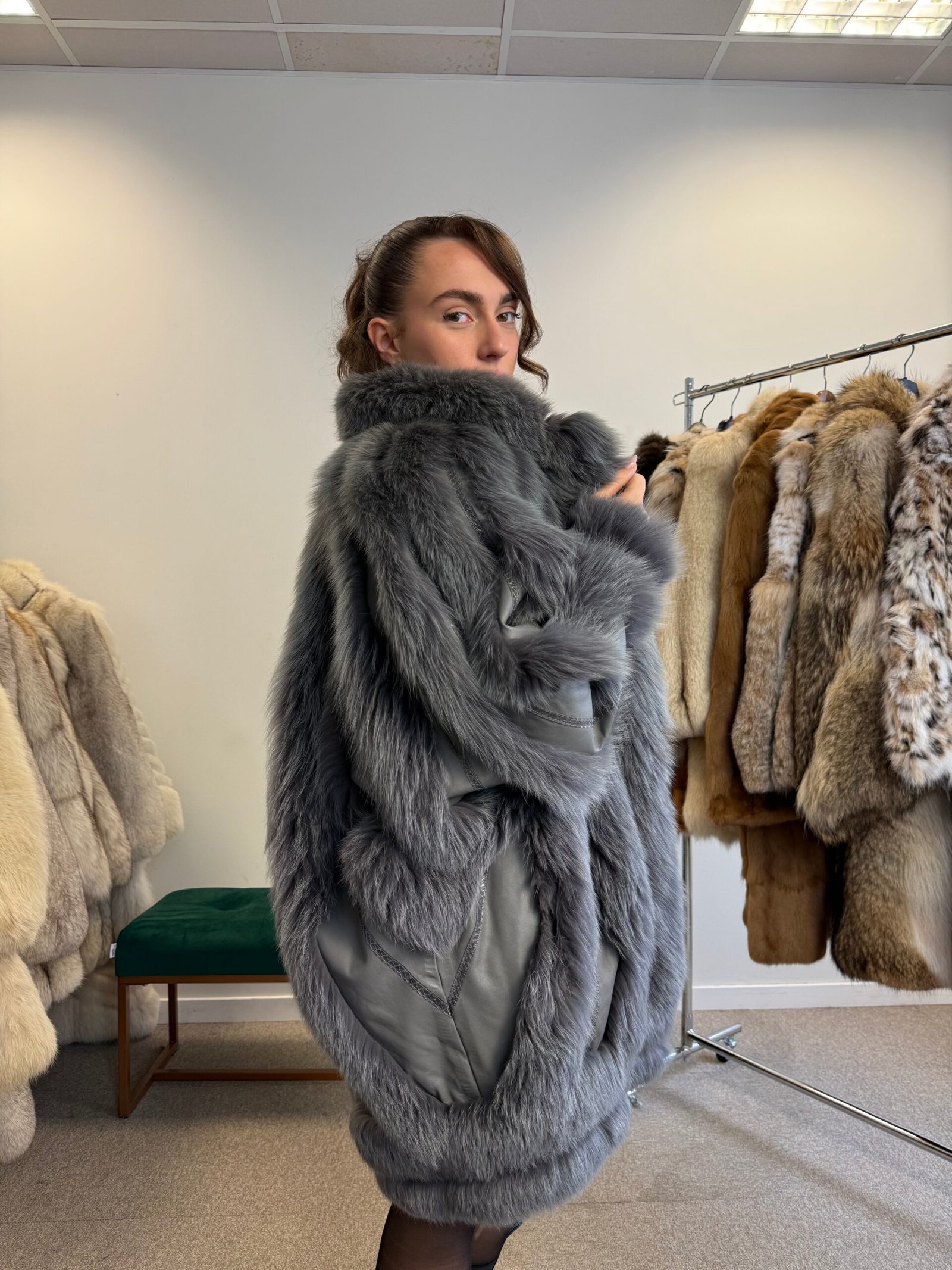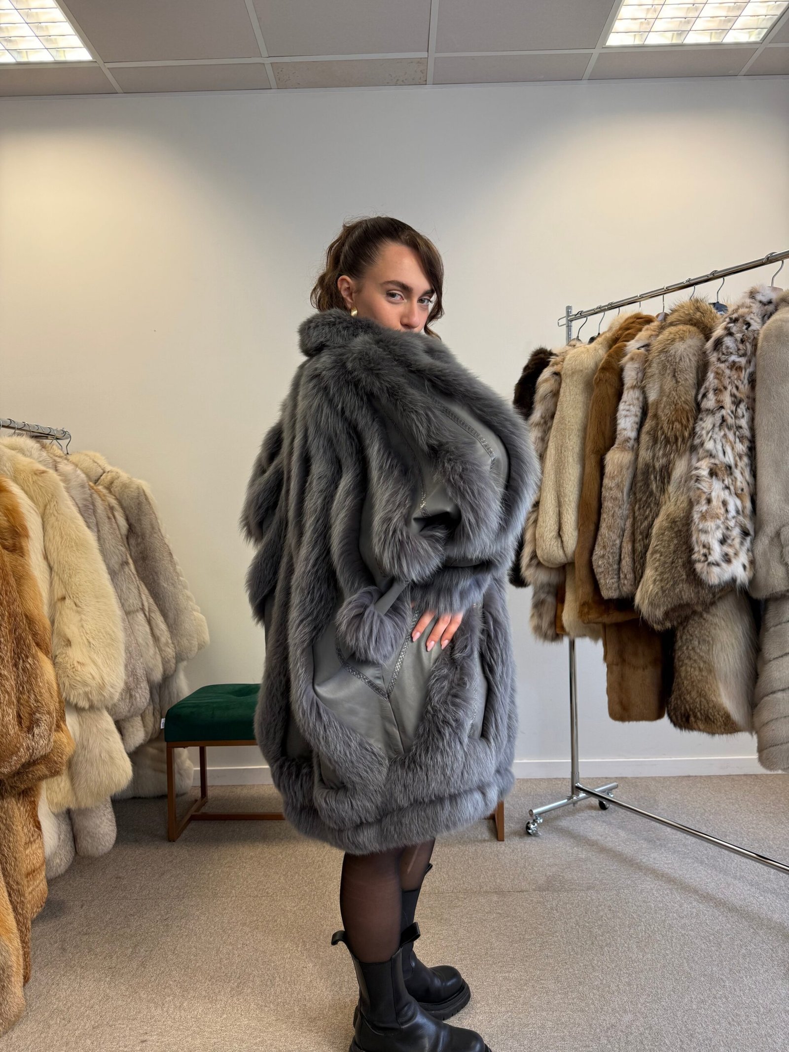 At the heart of this coat is authentic coat fur fox, sourced and treated with care to preserve its softness and natural luster. Fox fur is known for its exceptional warmth, lightweight feel, and durability, making it one of the most desirable materials in luxury outerwear.