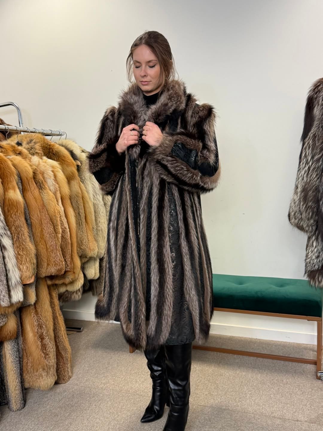 This fur coat is made of real raccoon fur with leather. This vintage coat is in brown and silver colours , excellent condition, high fur quality, vintage and a rare find.
